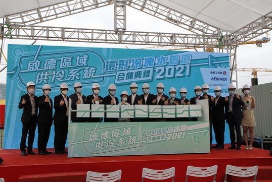 香港特區政府機電工程署于2021年4月19日在2849EM17A項目部舉行“啟德區域供冷系統環形冷凍水管道合龍典禮”,慶祝機電工程署在啟德新區冷凍水管道工程完工合龍。