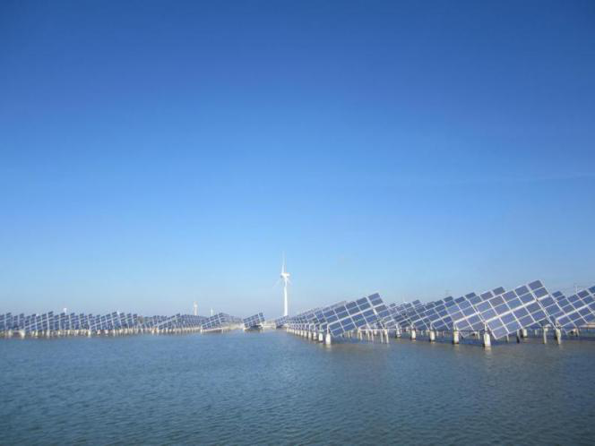 2011年12月30日,中節能江蘇東臺78.8兆瓦灘涂光伏發電項目并網發電,是當時國內規模最大的灘涂電站,僅用了80余天完成建設。該項目利用國華公司40萬千瓦陸上風電下面閑置的2100畝灘涂,形成上有風電、中有太陽能發電、下有水面養殖的“風光漁”三合一綜合利用模式,起到良好的示范作用。