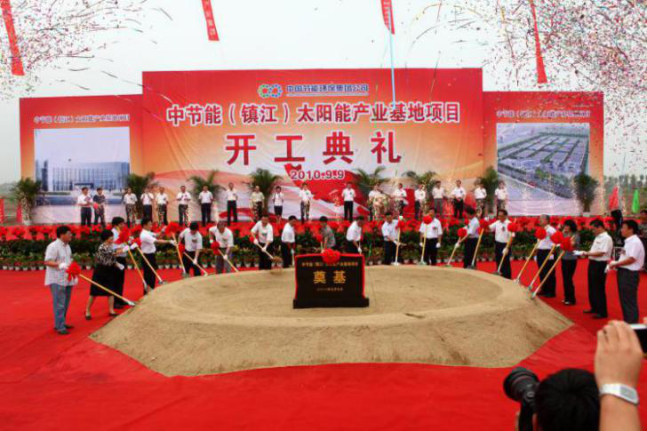 2010年9月9日,中節能(鎮江)太陽能產業基地項目在江蘇鎮江新區新能源產業園奠基開工。時任中國節能環保集團公司黨委書記陳津恩、總經理余海龍,中國可再生能源學會孟憲淦等領導嘉賓出席開工典禮并為基地培土。
