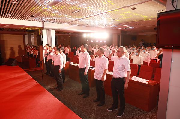 大會開始時,集團公司黨委書記、董事長宋鑫帶領(lǐng)集團系統(tǒng)全體黨員面向黨旗,莊嚴(yán)宣誓。這是集團系統(tǒng)歷史上最大范圍的一次集體重溫入黨誓詞活動,使廣大黨員在這個特殊日子接受了一次生動的黨性教育。