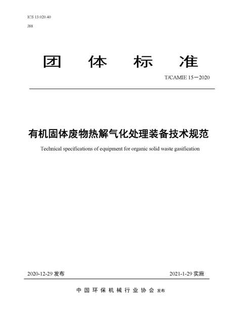 由中國環(huán)保機械行業(yè)協(xié)會歸口,中節(jié)能環(huán)保裝備股份有限公司(以下簡稱“中環(huán)裝備公司”)牽頭編制的團體標準《有機固廢熱解氣化處理裝備技術要求》(以下簡稱《標準》)經(jīng)過立項答辯、標準起草、意見征求、專家審查等環(huán)節(jié),于2020年12月29日批準發(fā)布,這也是我國首個有機固廢熱解氣化處理裝備團體標準。