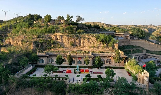 游人在陜西省榆林市米脂縣楊家溝革命舊址參觀(9月10日攝,無人機(jī)照片)。新華社記者 陶明 攝