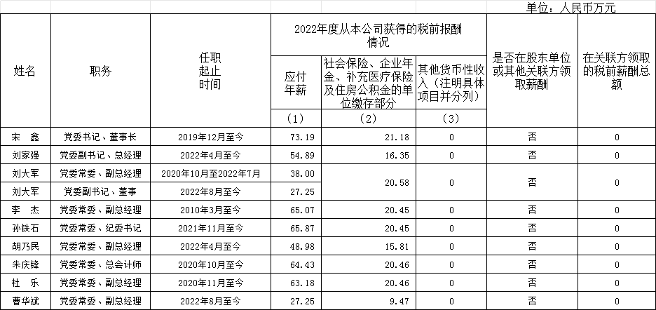 中國節(jié)能環(huán)保集團有限公司公司企業(yè)負責(zé)人2022年度薪酬情況