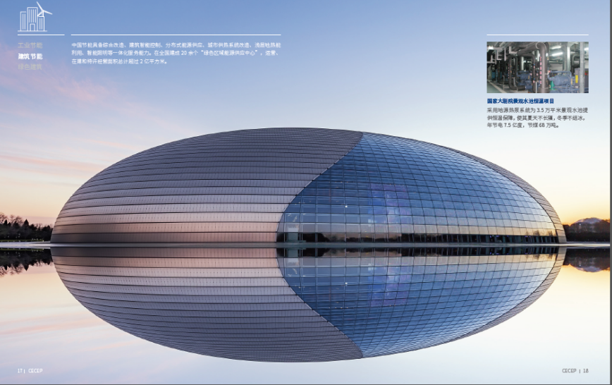 中國節能是我國節能與清潔供能事業的重要開拓者與踐行者,圍繞能源的生產、供應和消費,重點開展節能服務、清潔供能和清潔能源開發業務。自成立以來,中國節能承擔完成多項重要政策制訂、規劃編制、專題研究和工程項目建設等工作。1984年,參與制訂《中國節能技術政策大綱》(第一版);1988-1998年,通過承擔國家節能基建投資專項任務,推動13大類重大節能措施的推廣應用,投資建成3000余項重大節能工程,實現90個城市集中供熱和139個城市供氣;參與編制《“十一五”十大重點節能工程實施意見》;承擔國家“十三五”節能環保產業發展規劃編制等任務。